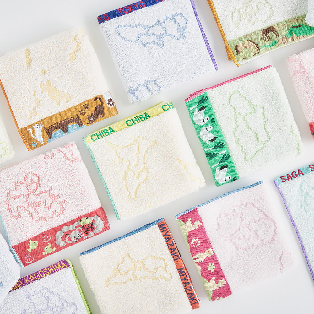 [NEW] ご当地モチーフと都道府県のシルエットが織り込まれた、ジャカード織のタオルハンカチ