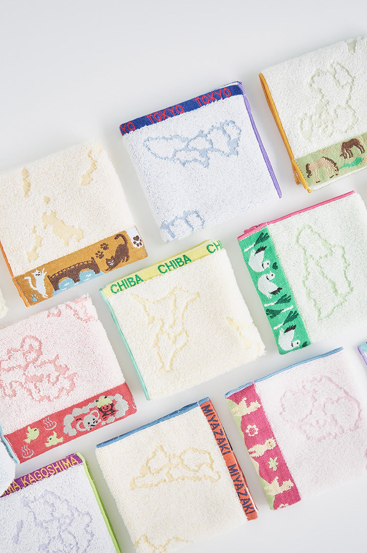 [NEW] ご当地モチーフと都道府県のシルエットが織り込まれた、ジャカード織のタオルハンカチ