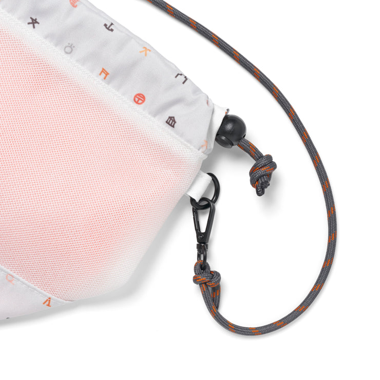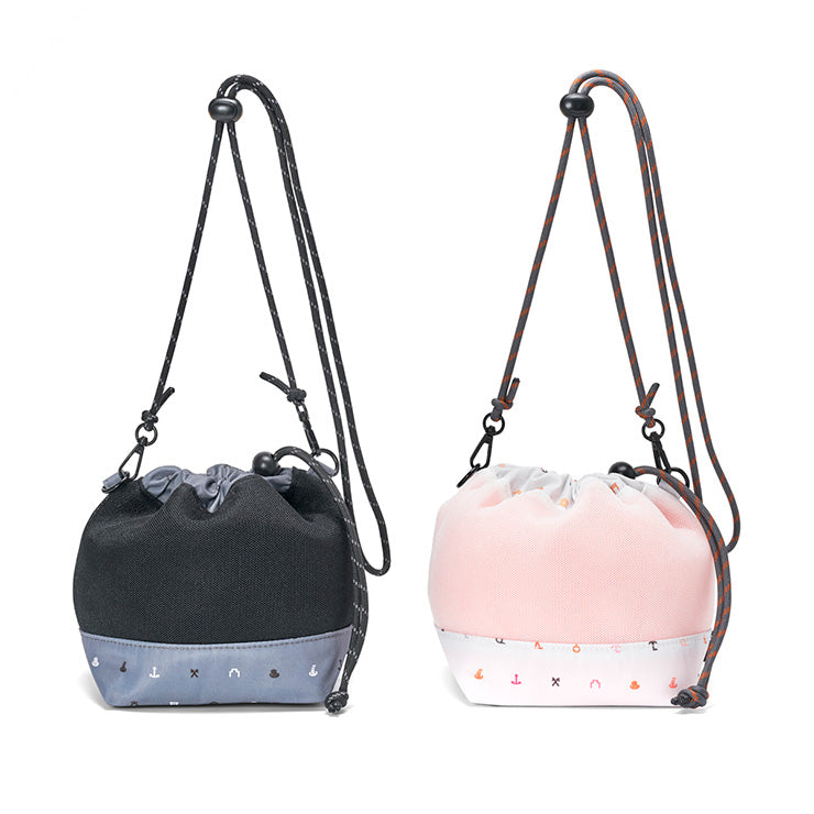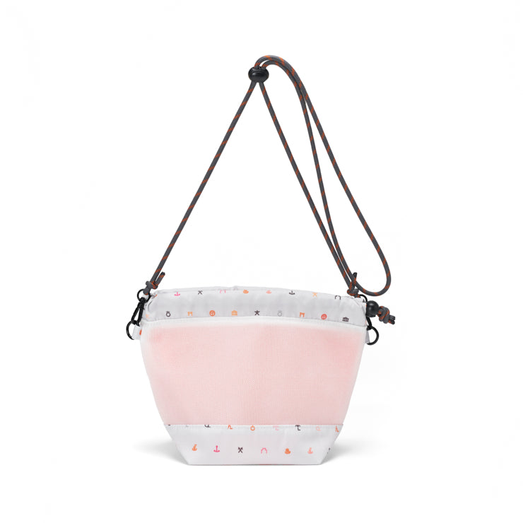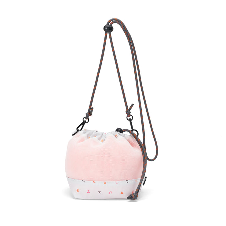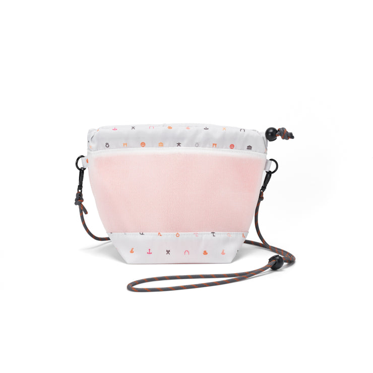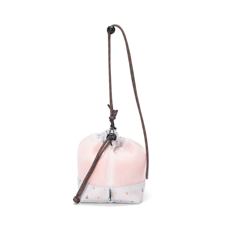 財布やスマートフォンなど、手回り品をコンパクトにまとめて持ち歩ける巾着型ミニショルダーバッグです。立体感のある軽量なメッシュ素材を使用しているため、長時間の外出でも重さを気にせず持ち歩けます。外側はメッシュ、内側は裏地付きで中身が見えにくく安心です。2色使いのパラシュートコードがアクセントとなり、ミニポシェット型のデザインもトレンド感たっぷり。街歩きやフェスなど、身軽に動きたいシーンに最適です。