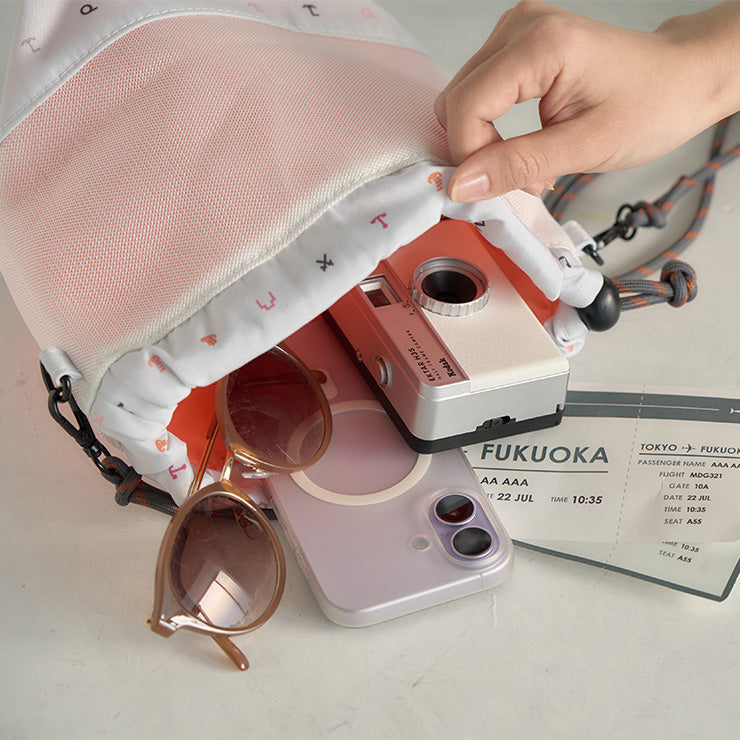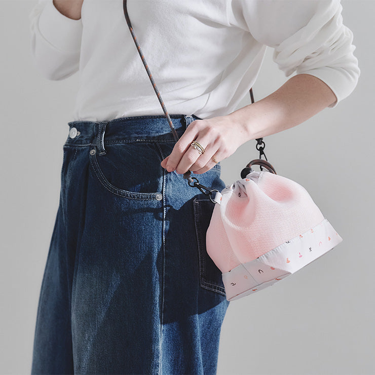 地図記号をカラフルに組み合わせてデザインした、巾着ミニショルダーバッグです。
