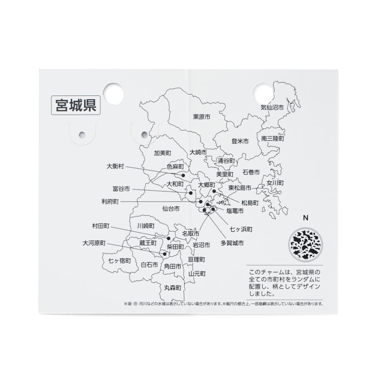 それぞれのチャーム裏面には、都道府県名と方位マーク/北を表す「N」を記載しました。地図会社ならではの遊び心を詰め込んだデザインです。