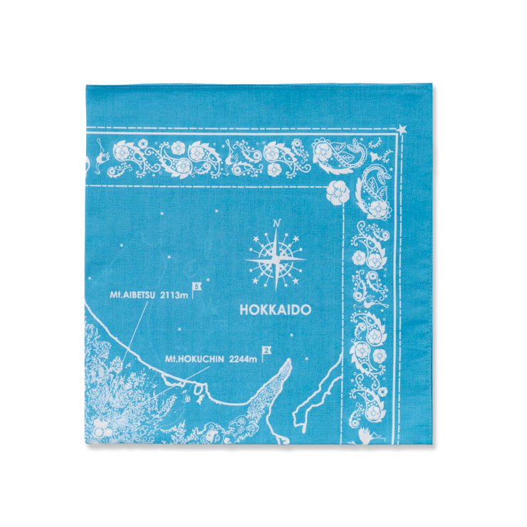 バンダナらしいカジュアルさがありながらも、落ち着いた重厚感のあるデザインで、カラーはスカイブルーです。
