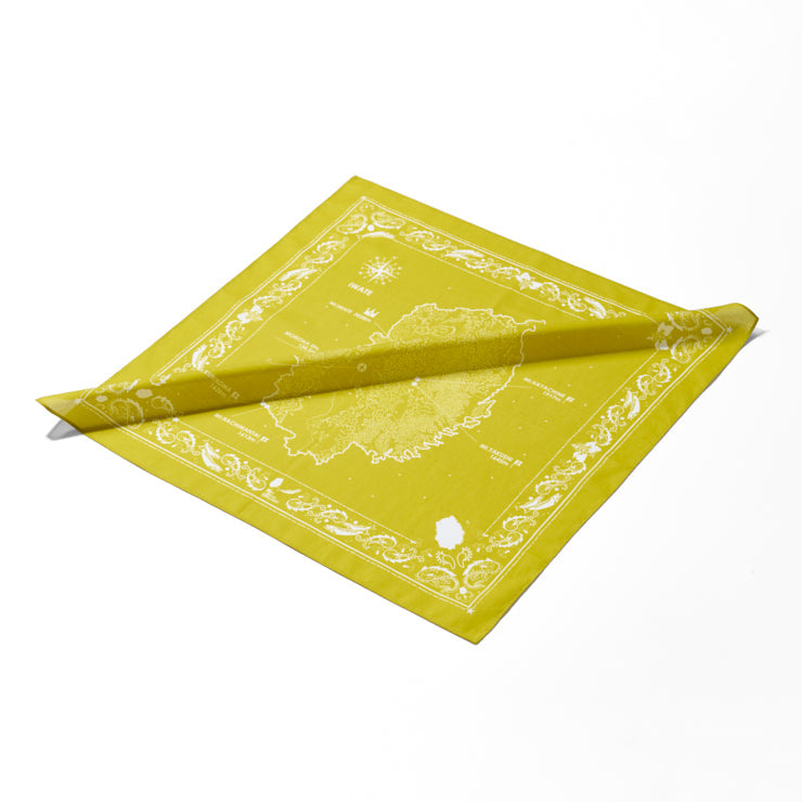 バンダナらしいカジュアルさがありながらも、落ち着いた重厚感のあるデザインで、カラーはイエローです。