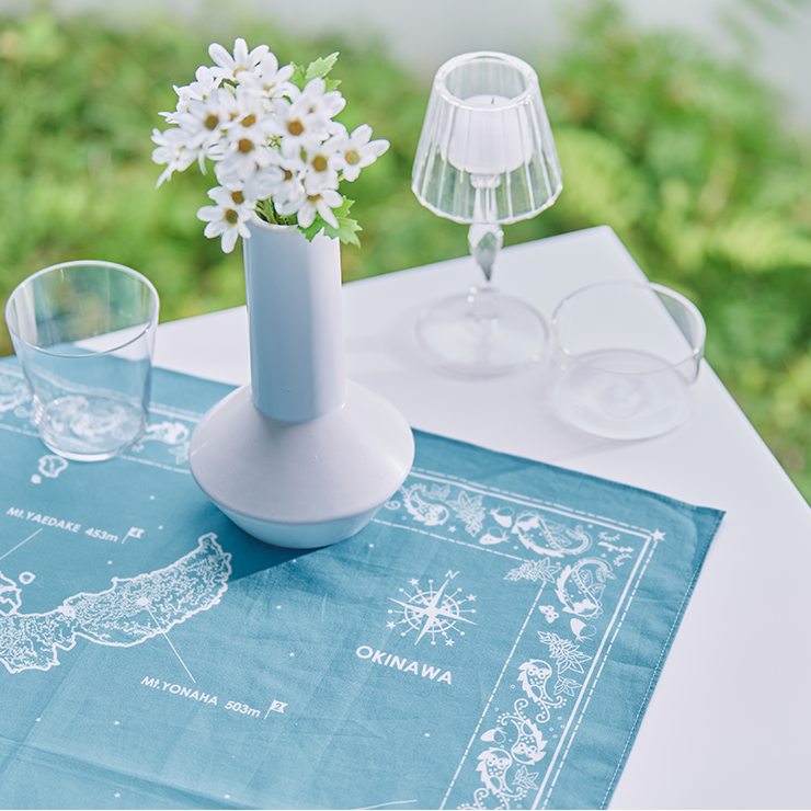 生地は綿100%で丈夫でしわになりにくく、サイズは通常のハンカチよりも大きめのバンダナサイズ(約横550×縦550mm)です。