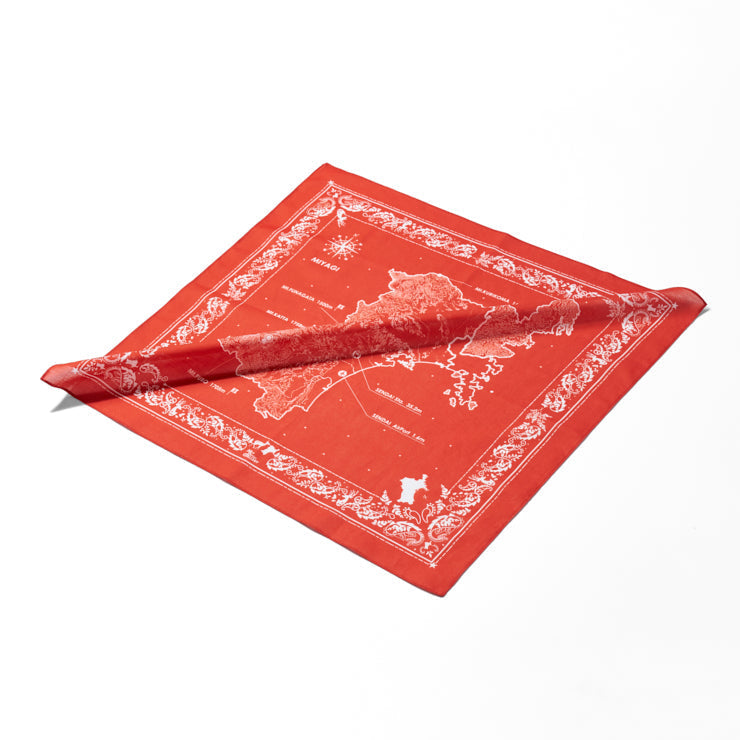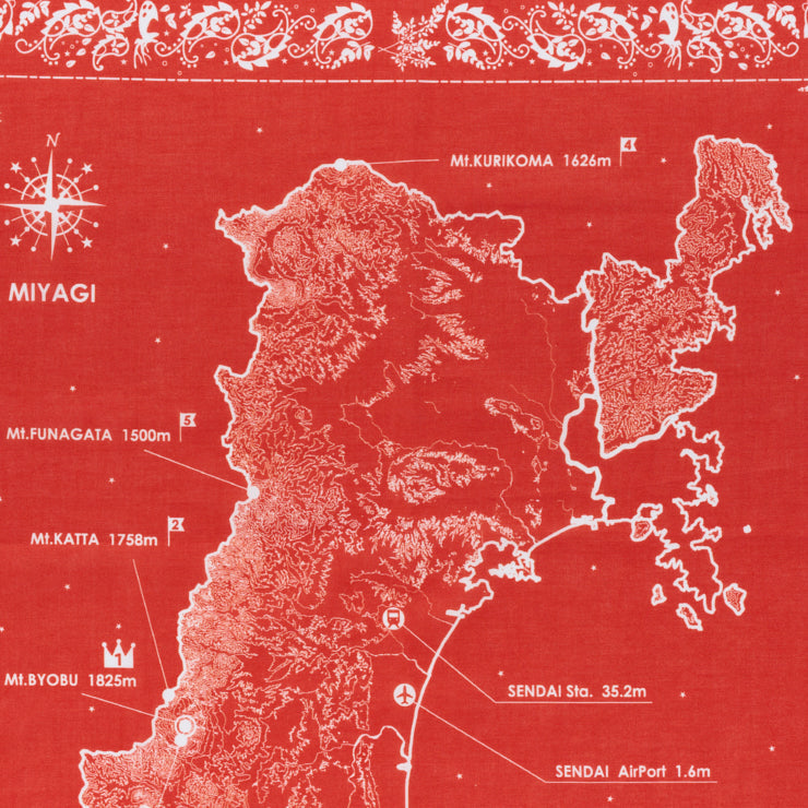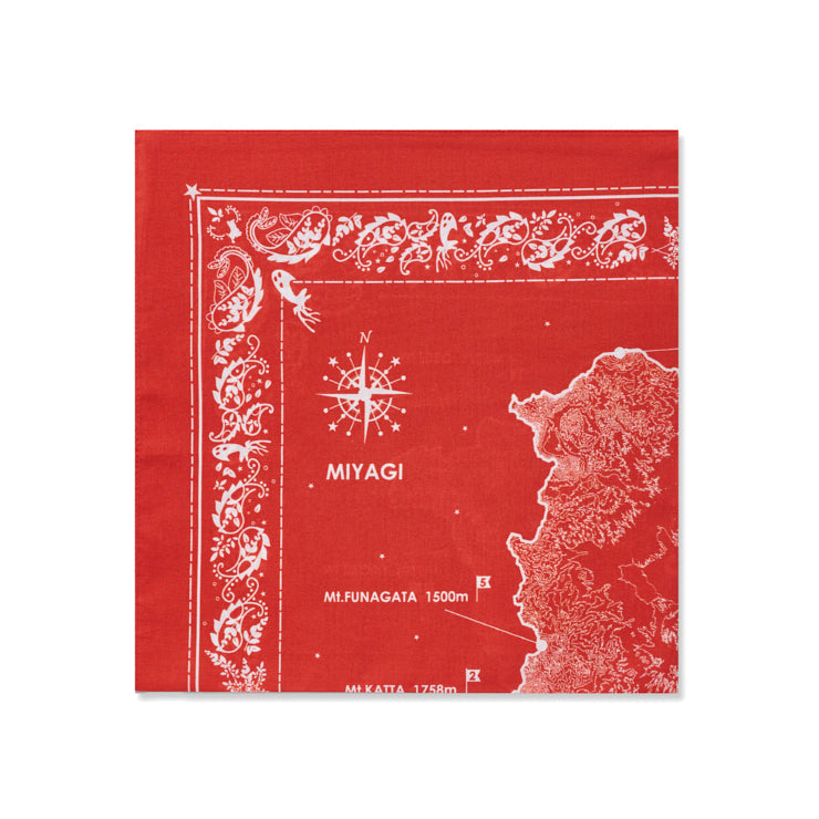 クラシックなバンダナの代名詞となっている「ペイズリー柄」の有機的なモチーフをベースに、宮城県の県花「ミヤギノハギ」や県獣「シカ」をデザインに盛り込みました。