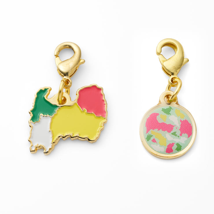 それぞれのチャーム裏面には、都道府県名と方位マーク/北を表す「N」を記載しました。地図会社ならではの遊び心を詰め込んだデザインです。
