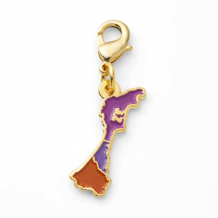 それぞれのチャーム裏面には、都道府県名と方位マーク/北を表す「N」を記載しました。地図会社ならではの遊び心を詰め込んだデザインです。