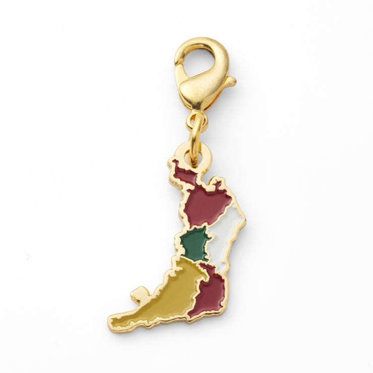 それぞれのチャーム裏面には、都道府県名と方位マーク/北を表す「N」を記載しました。地図会社ならではの遊び心を詰め込んだデザインです。