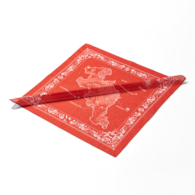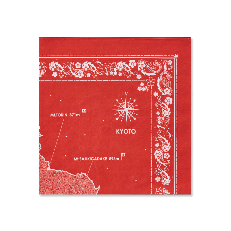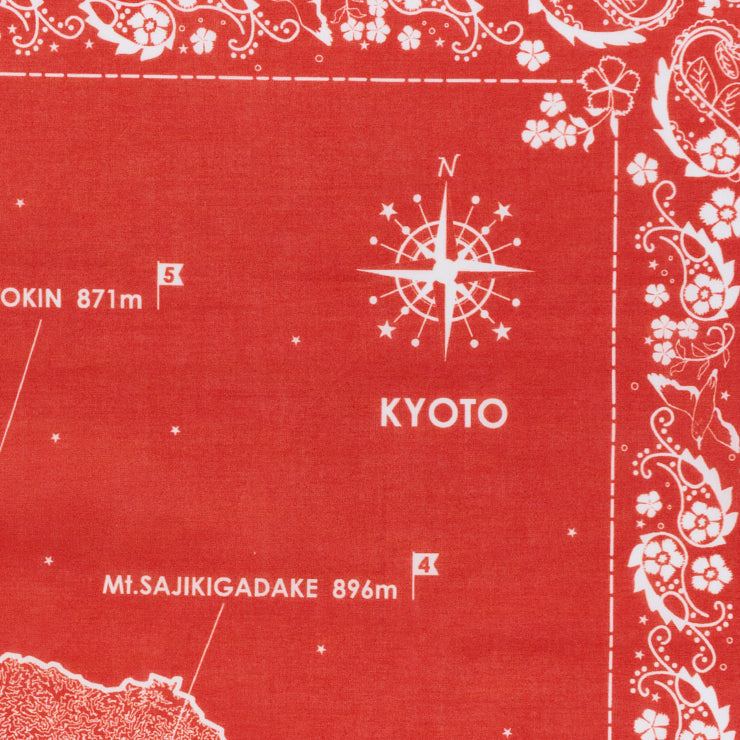 クラシックなバンダナの代名詞となっている「ペイズリー柄」の有機的なモチーフをベースに、京都府の花「なでしこ」や京都府の鳥「オオミズナギドリ」をデザインに盛り込みました。