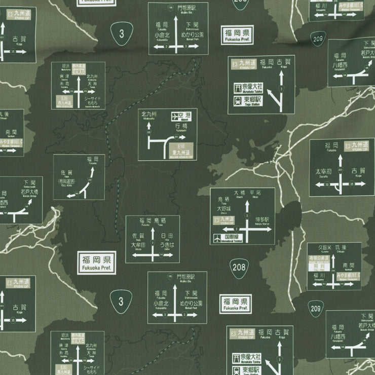|福岡県に実在する「方面看板」10種を総柄でデザイン