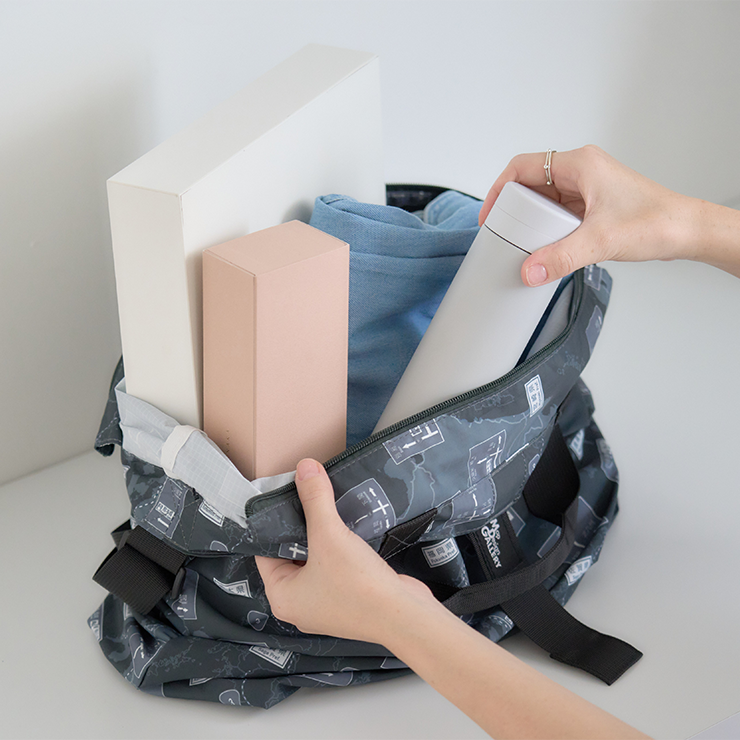 |ベルトでまとめてコンパクトに持ち運べるパッカブルバッグ