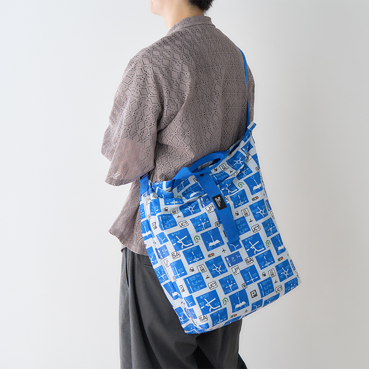 福岡県の方面看板を総柄でデザインしたパッカブルバッグです。