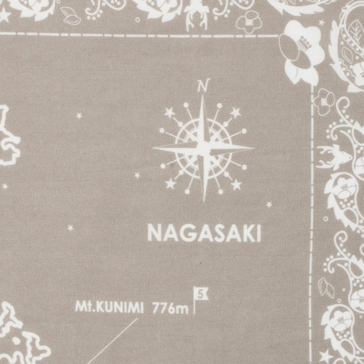 クラシックなバンダナの代名詞となっている「ペイズリー柄」の有機的なモチーフをベースに、長崎県の県の花木「ツバキ」や県民獣「九州シカ」をデザインに盛り込みました。