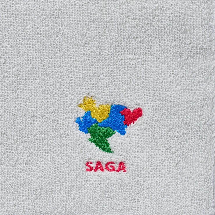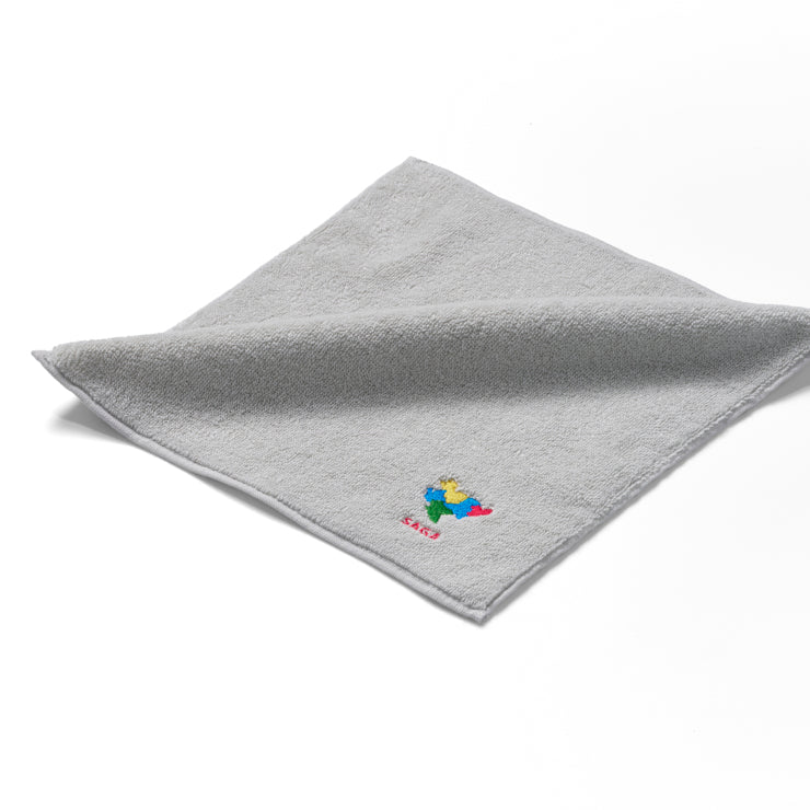 今治産の良質なライトグレーのタオル生地に、47都道府県のそれぞれの形をワンポイントで刺繍しました。