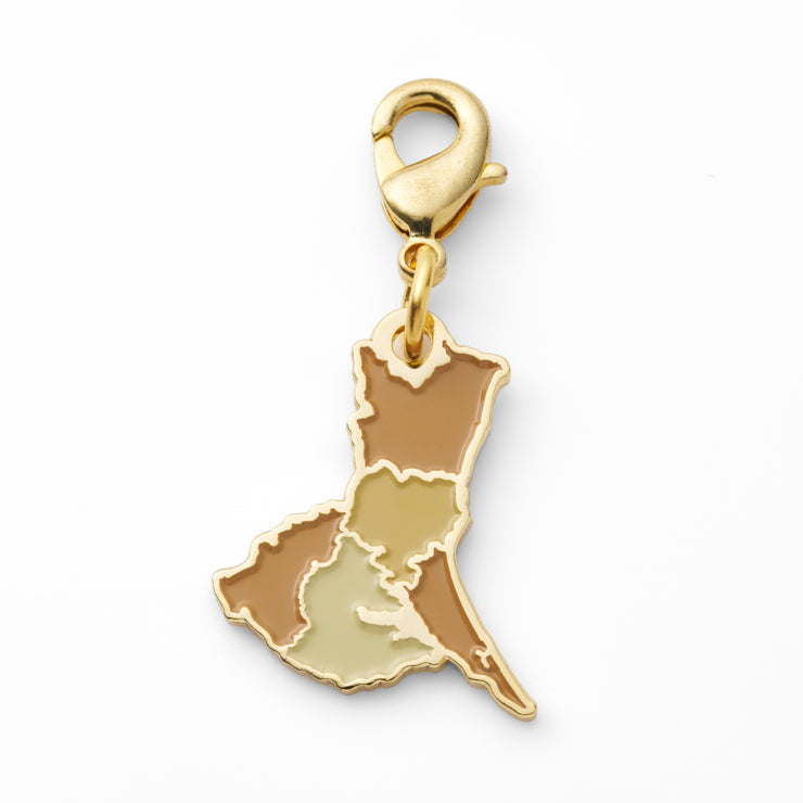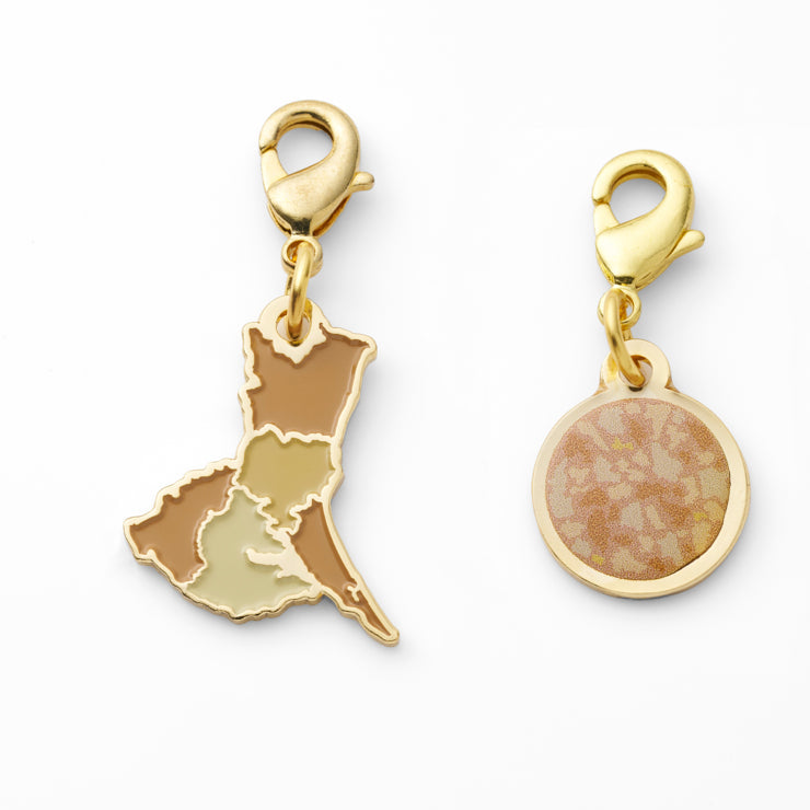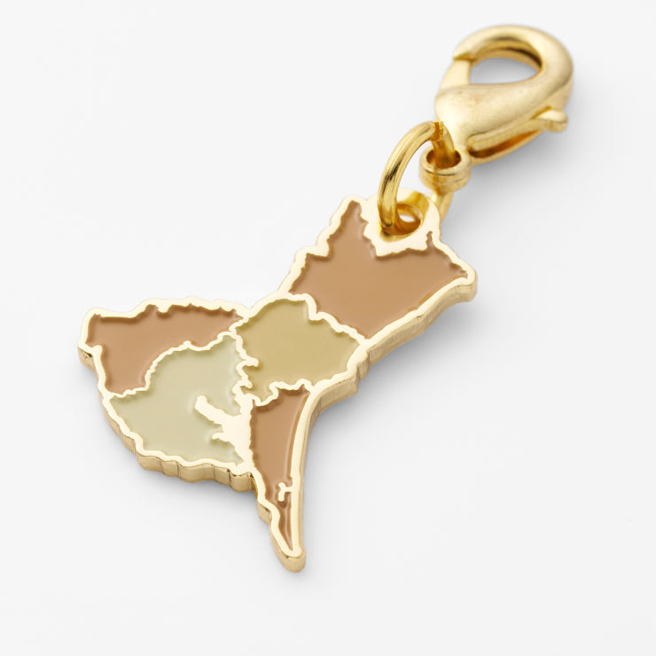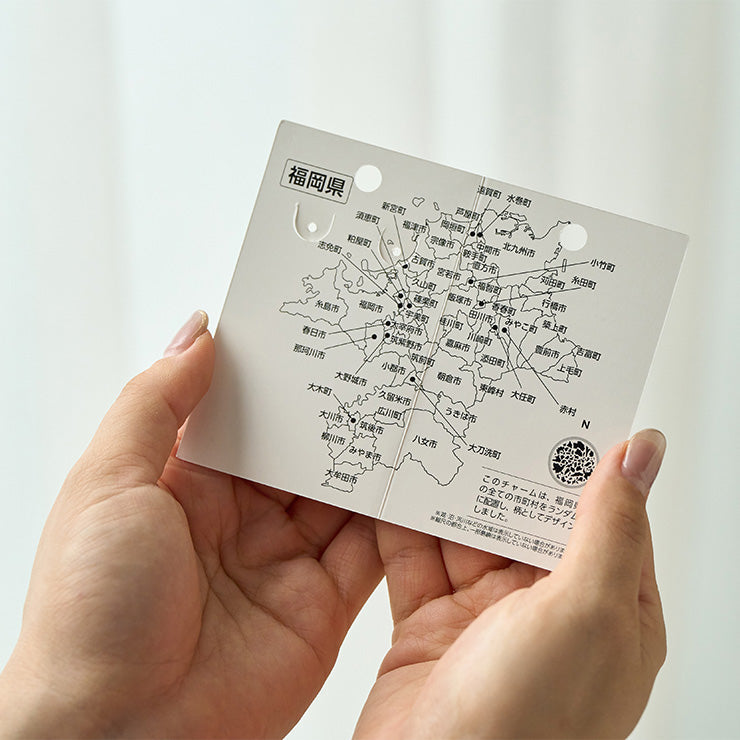 それぞれのチャーム裏面には、都道府県名と方位マーク/北を表す「N」を記載しました。地図会社ならではの遊び心を詰め込んだデザインです。