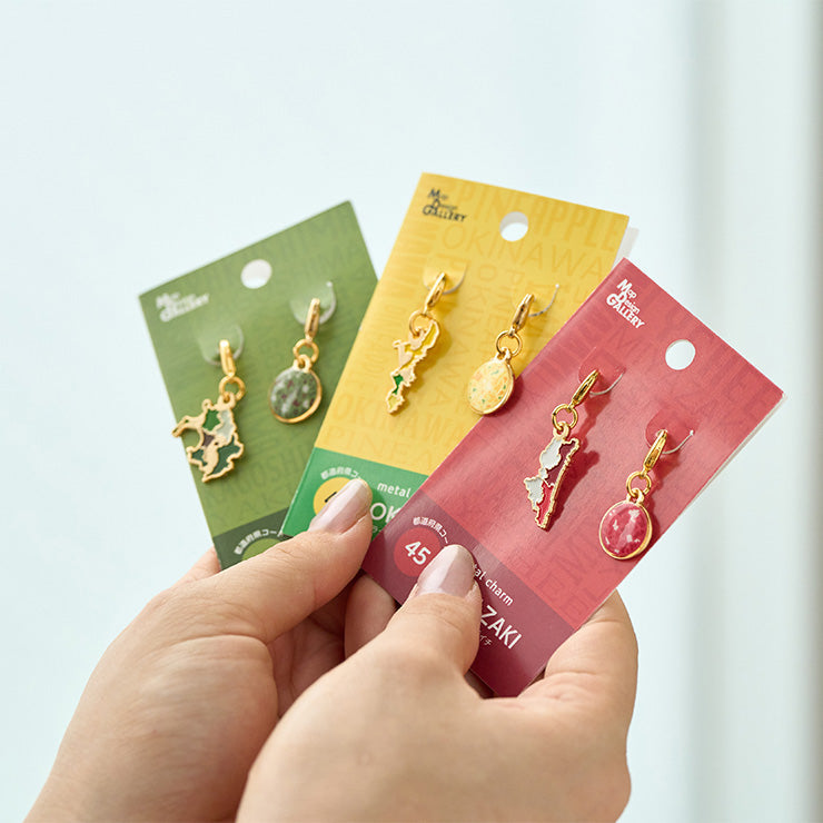 大人気「47palette カラーピンズプラス」のデザインがメタルチャームセットになりました。「都道府県型」は、都道府県の形を地域に分けデザイン。「丸型」は、都道府県から抜き取った市町村(北海道は振興局/東京都は特別区(23区)含む)全ての形を方位そのままにランダムに配置しました。どちらも、その都道府県にゆかりのあるモチーフをイメージした色合い。ポーチやペンケース、財布のファスナーに付けてかわいいサイズ感。リングノートやボールペンなどに付ければ自分だけの目印に。