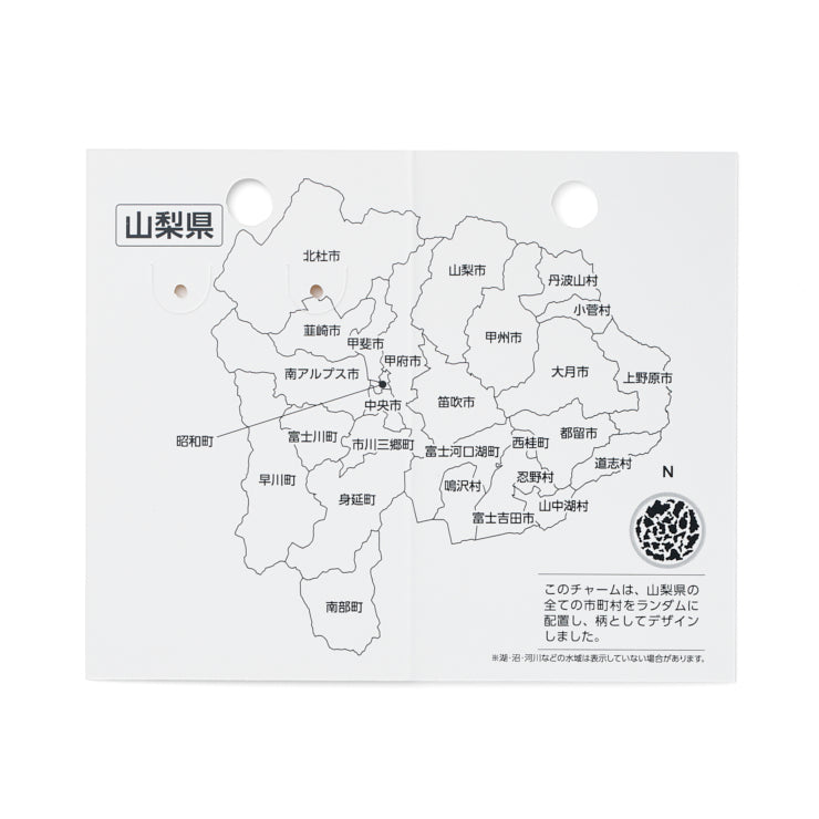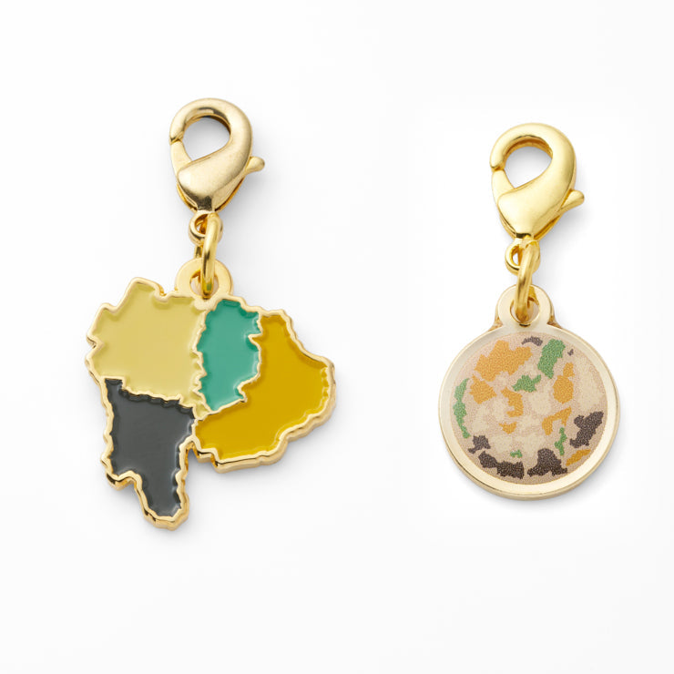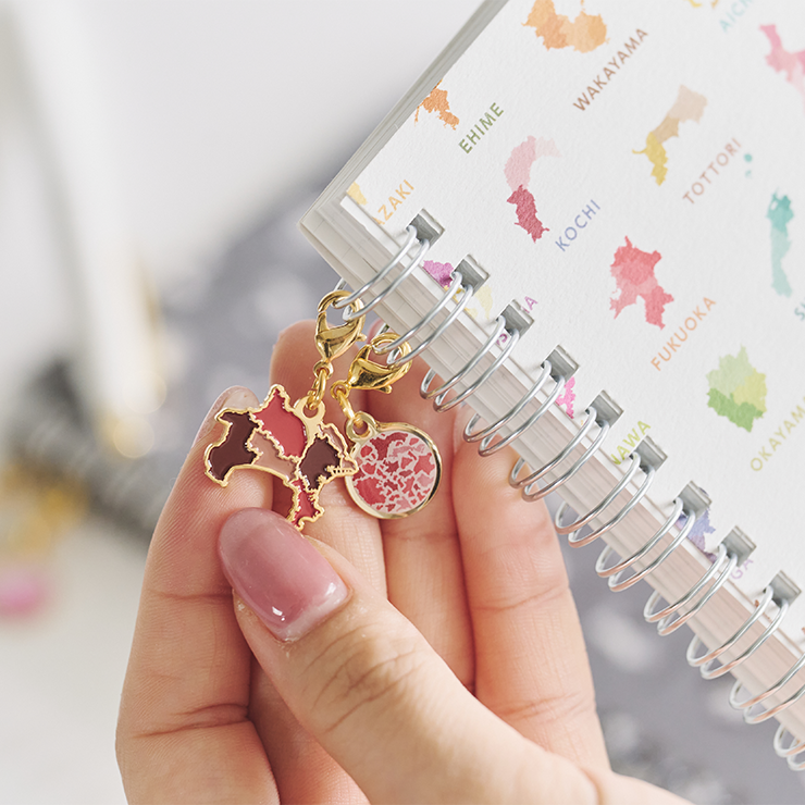 それぞれのチャーム裏面には、都道府県名と方位マーク/北を表す「N」を記載しました。地図会社ならではの遊び心を詰め込んだデザインです。
