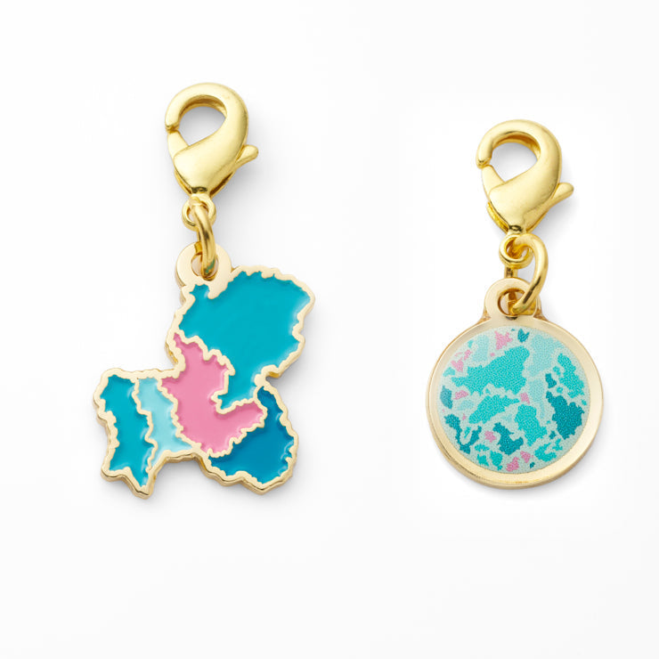それぞれのチャーム裏面には、都道府県名と方位マーク/北を表す「N」を記載しました。地図会社ならではの遊び心を詰め込んだデザインです。