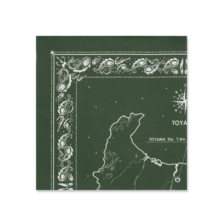 バンダナらしいカジュアルさがありながらも、落ち着いた重厚感のあるデザインで、カラーはグリーンです。