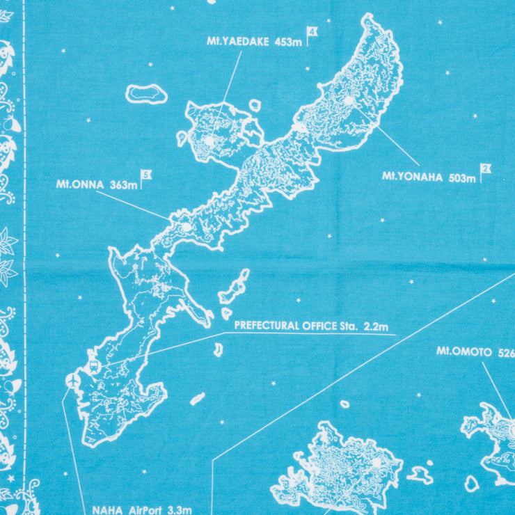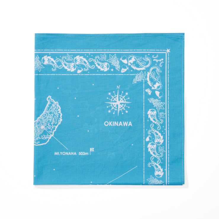 クラシックなバンダナの代名詞となっている「ペイズリー柄」の有機的なモチーフをベースに、沖縄県の県花「デイゴ」や県蝶「オオゴマダラ」をデザインに盛り込みました。