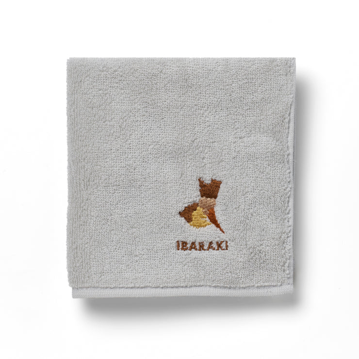 「47palette」シリーズ「茨城県」のタオルハンカチ(ライトグレー)です。