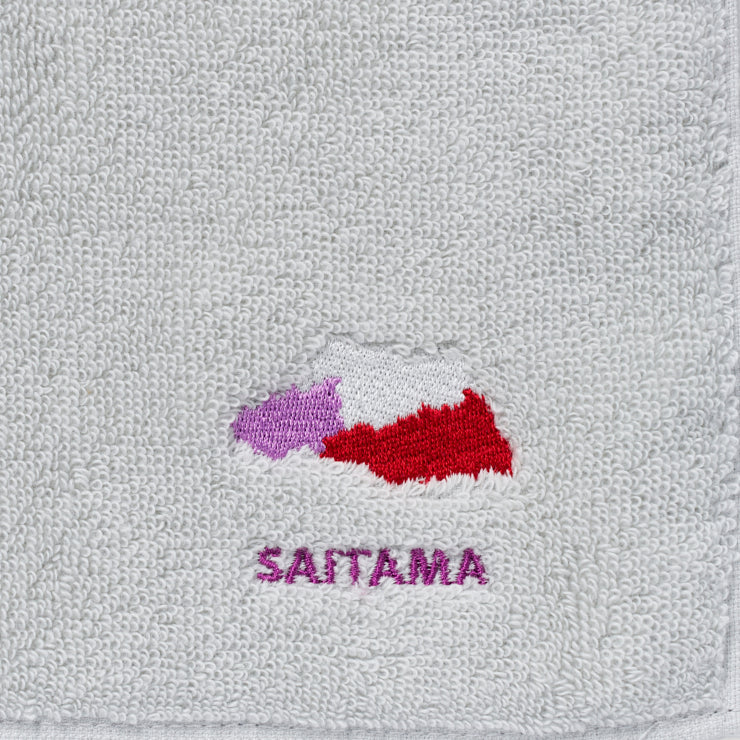 今治産の良質なライトグレーのタオル生地に、47都道府県のそれぞれの形をワンポイントで刺繍しました。