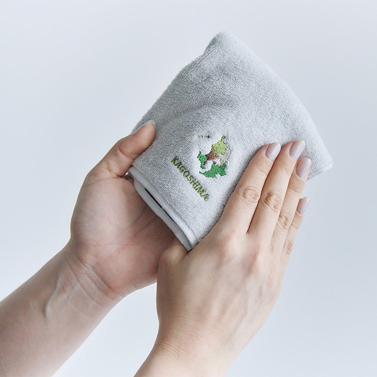 今治産の良質なライトグレーのタオル生地に、47都道府県のそれぞれの形をワンポイントで刺繍しました。