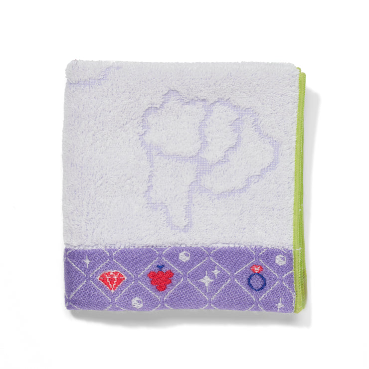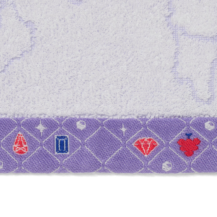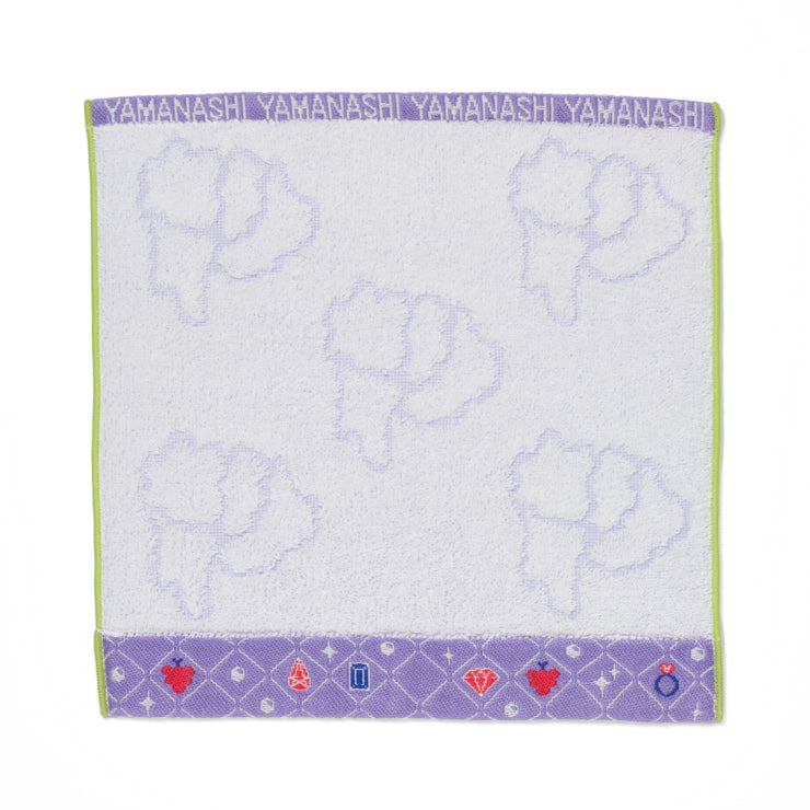 中央のタオル生地部分は透かし織で都道府県のシルエットが、タオルの端(ヘム)部分はジャカード織で上部には英字の都道府県名、下部には都道府県ゆかりのモチーフが織り込まれています。