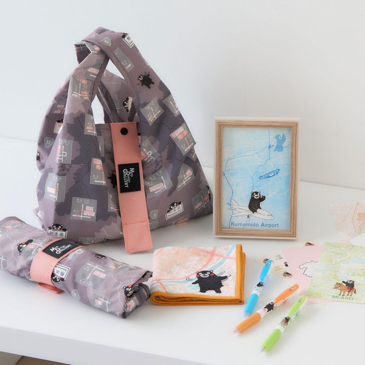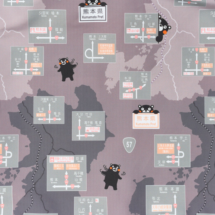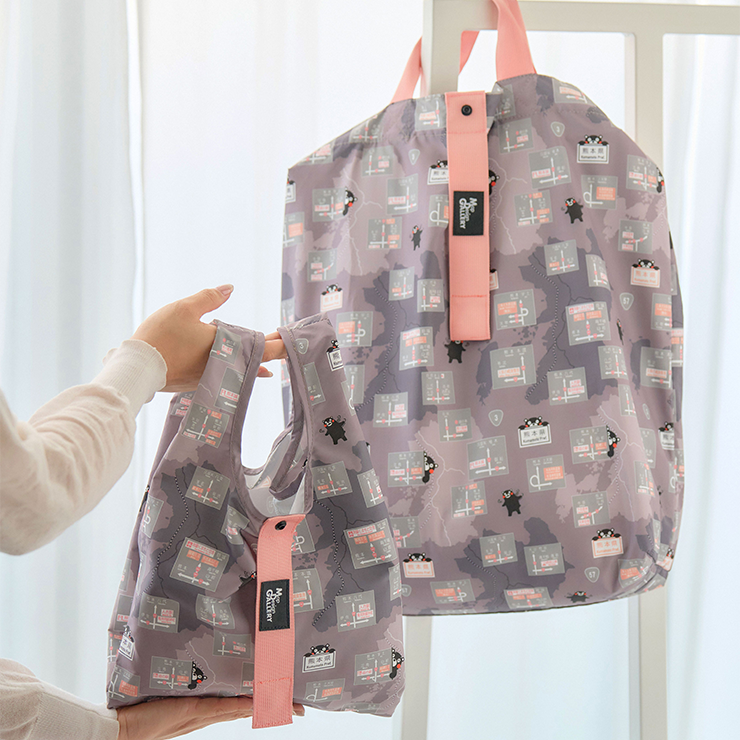 熊本県内の方面看板デザインとくまモンのイラストを散りばめた限定デザインです。毎日の買い物やお出かけが楽しくなるアイテムです。