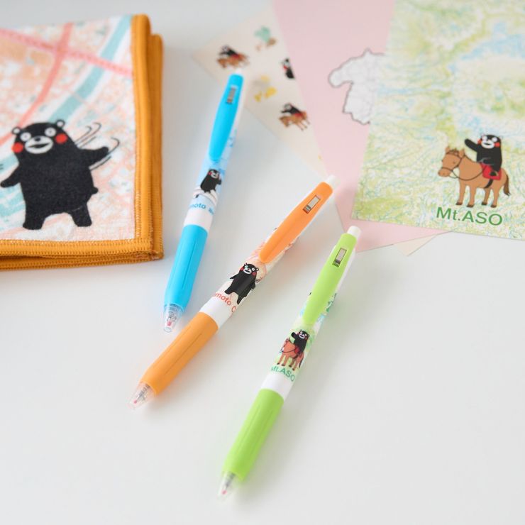 くまモンと熊本県の地図がデザインされた、サラサクリップ0.5ボールペン3本セット(インク黒)です。