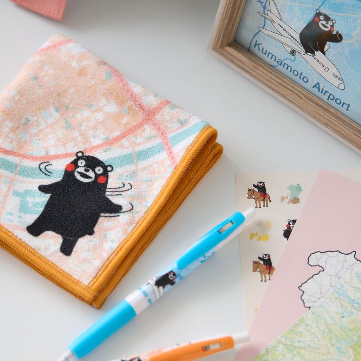 熊本城、熊本空港、阿蘇山など熊本県の有名観光地の地図とくまモンがペンごとにデザインされています。お土産やギフトにもおすすめです。
