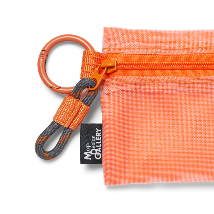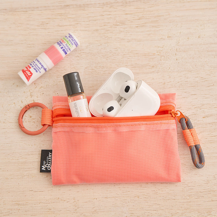 コンパクトサイズのミニポーチです。中身が透けないハードメッシュ仕様で、コインパースとしてはもちろん、二つ折りの紙幣も収納可能。リングタイプのカラビナ付きのためバッグやベルトループに取り付けられ、鍵やリップなどの小物収納にも便利です。旅先でも日常でも、身軽に行動したいシーンに活躍します。