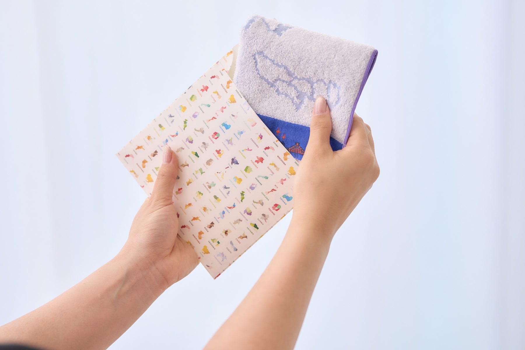約横158×縦158mmで、ジャガード織タオルハンカチをはじめとしたハンカチ・ハンドタオルがぴったり収まります。また、人気商品のピンバッジやメタルチャーム、都道府県型キーホルダーといった小物アイテムを入れるのにも最適です。