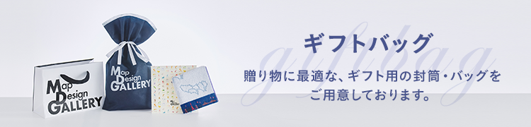 個包装で特別感を演出。ギフトとしてこのままお渡しできます。都道府県内の一部の地図を使用してデザイン。タオルの刺繍部分が透けて見えます。