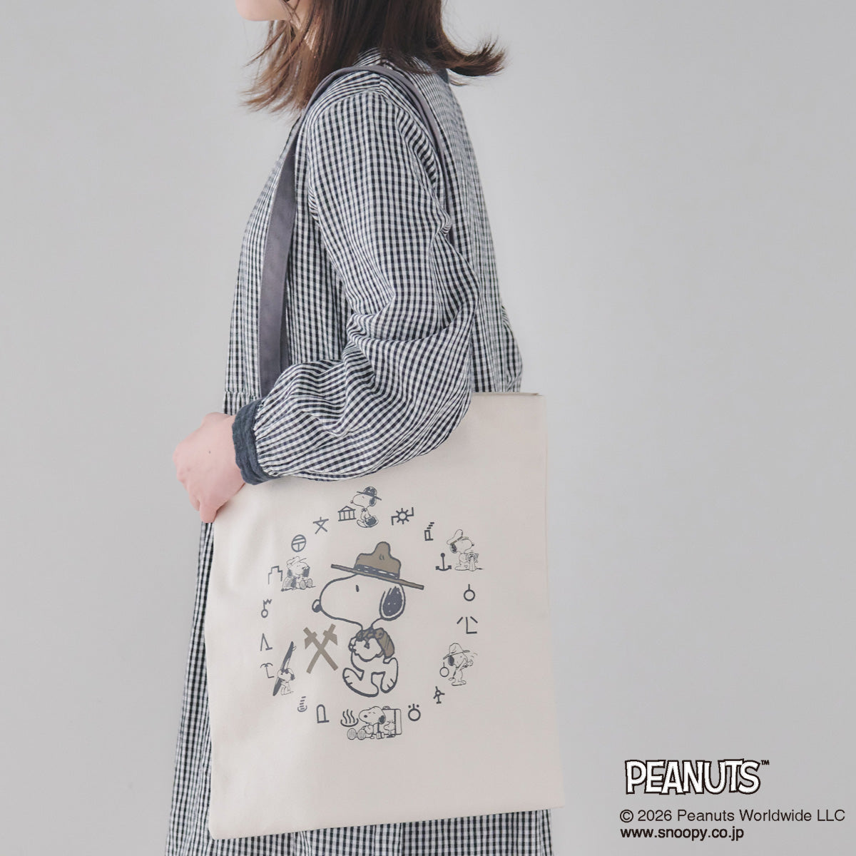「PEANUTS(ピーナッツ)」とコラボレーションした、内ポケット付きで日常使いしやすいシンプルなトートバッグです。